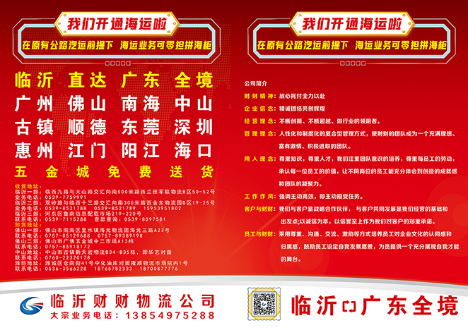 今日起临沂-广东,整箱海柜、零担拼柜;公路汽运、零担货运同步进行中……帮客户找供应商 帮供应商找配件一条龙服务开启!以最优惠的价格、优质的产品质量对应优秀的您,以更好的态度满足客户的需求!欢迎咨询、订购!