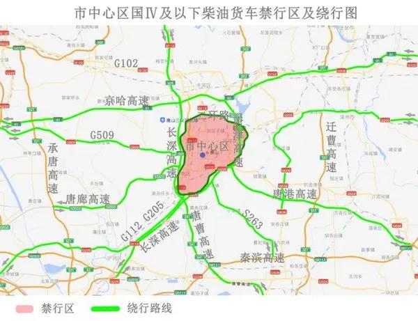 按照《方案》要求,将明确郑州市中重型柴油货车的禁行区域、路段及具体绕行路线;进一步加强中心城区燃油货车通行管控,并根据新能源货车推广进度和增量情况,逐步减少燃油货车市区通行证发放比例。择机出台限制轻型、微型燃油货车在郑州市三环路(含)以内区域通行的政策。● 河北唐山:城区禁行国四 附绕行路线为进一步加强移动源污染防治,持续改善大气环境质量,唐山市市中心区、遵化、丰润区、曹妃甸区等城区都为国四及以下排放标准的柴油货车划定了禁行区域。